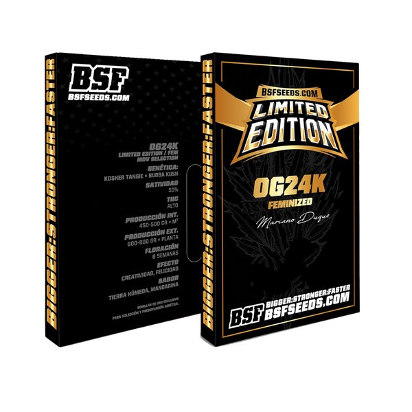 Seleccionada para una EDICIÓN LIMITADA, OG 24K x10 cumple con todos los requisitos de una planta excepcional: crecimiento vigoroso, gran resistencia y un aroma inconfundible que ha contribuido a que sea una de las cepas más premiadas en el banco de BSF Seeds. Es precisamente por estas razones que OG 24K ha regresado para el deleite de cultivadores y aficionados.